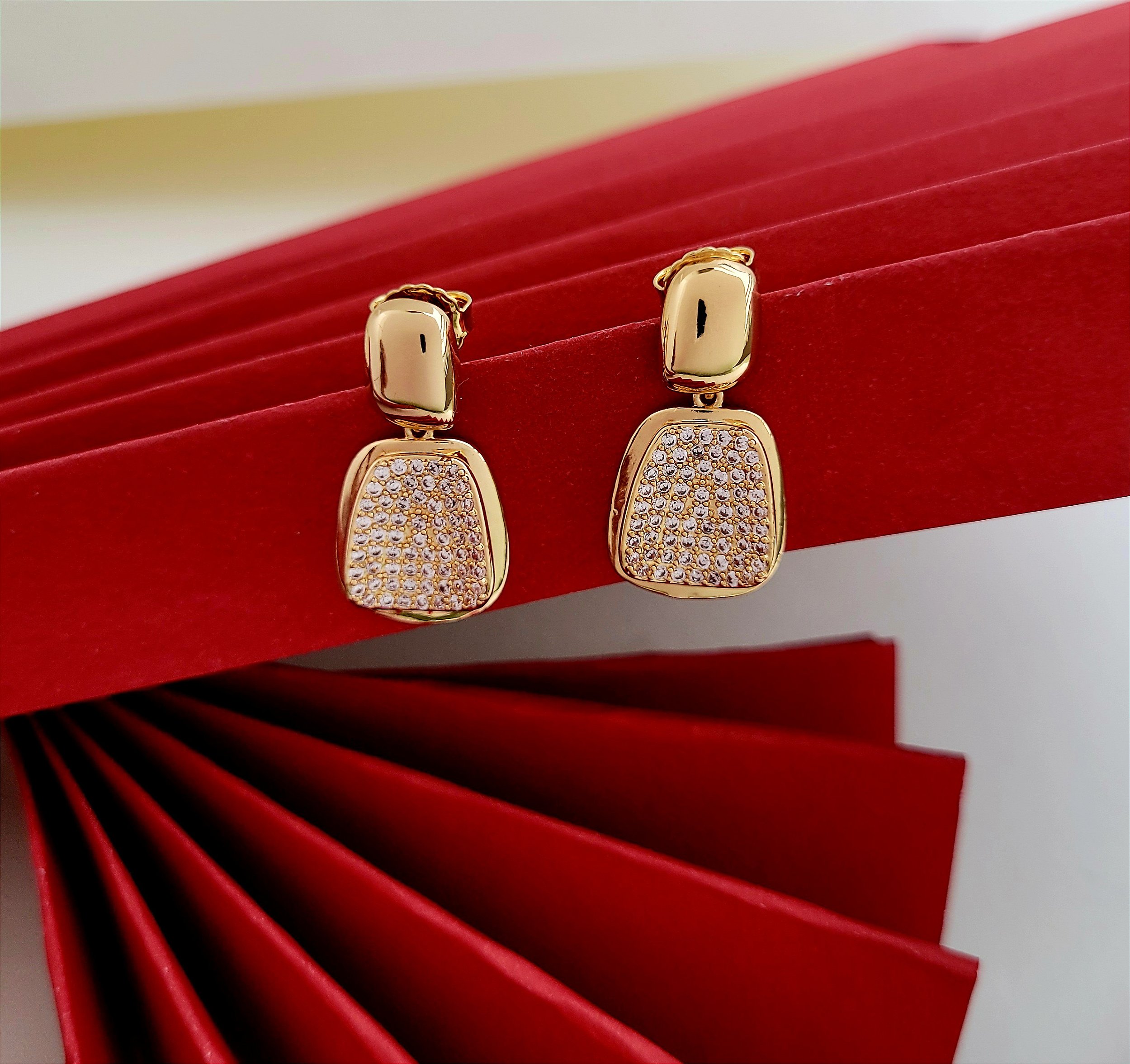 Brinco Geo Cravejado Banhado a Ouro 18k